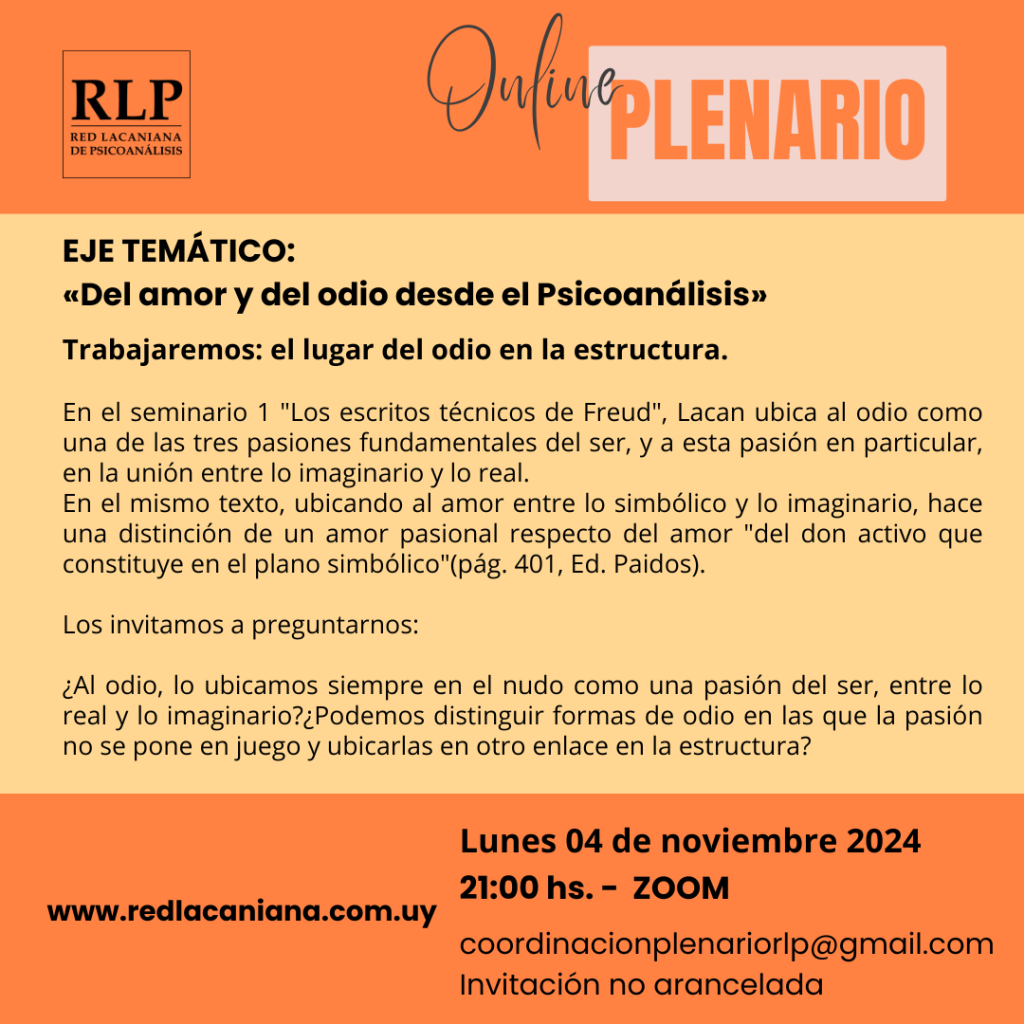 ¿Al odio, lo ubicamos siempre en el nudo como una pasión del ser, entre lo real y lo imaginario?¿Podemos distinguir formas de odio en las que la pasión no se pone en juego y ubicarlas en otro enlace en la estructura?
