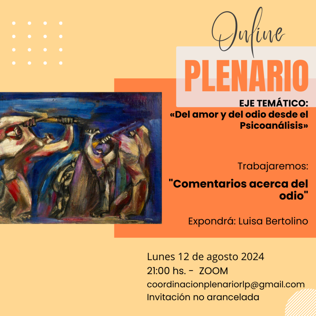 Trabajaremos: «Comentarios acerca del odio» Expondrá: Luisa Bertolino.