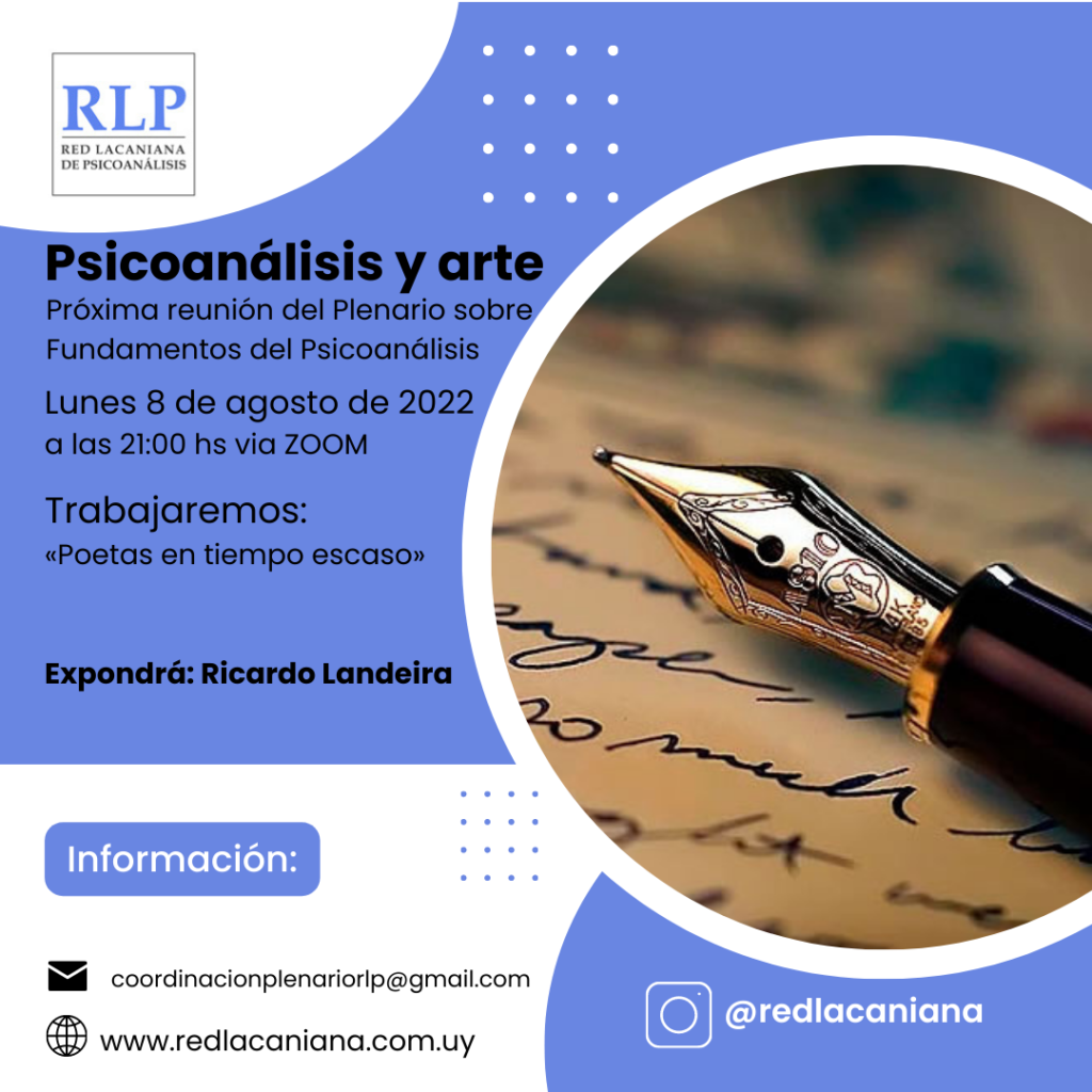 Trabajaremos: “Poetas en tiempo escaso” Expondrá: Ricardo Landeira