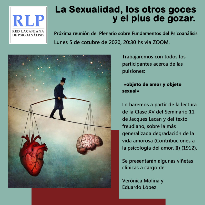 Próxima reunión del Plenario sobre Fundamentos del Psicoanálisis, continuando con el eje temático, abordando La Sexualidad, los otros goces y el plus de gozar